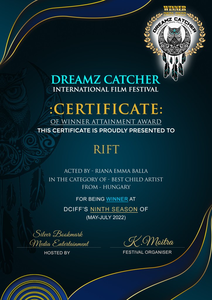 Dreamz Catcher International Film Festival- Best Child Artist 2022