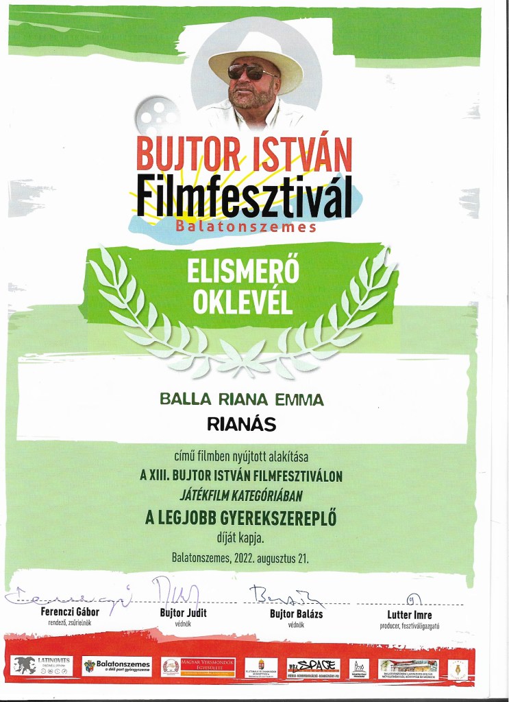 Bujtor István Filmfesztivál (Hungary) – Best Child Actress 2022