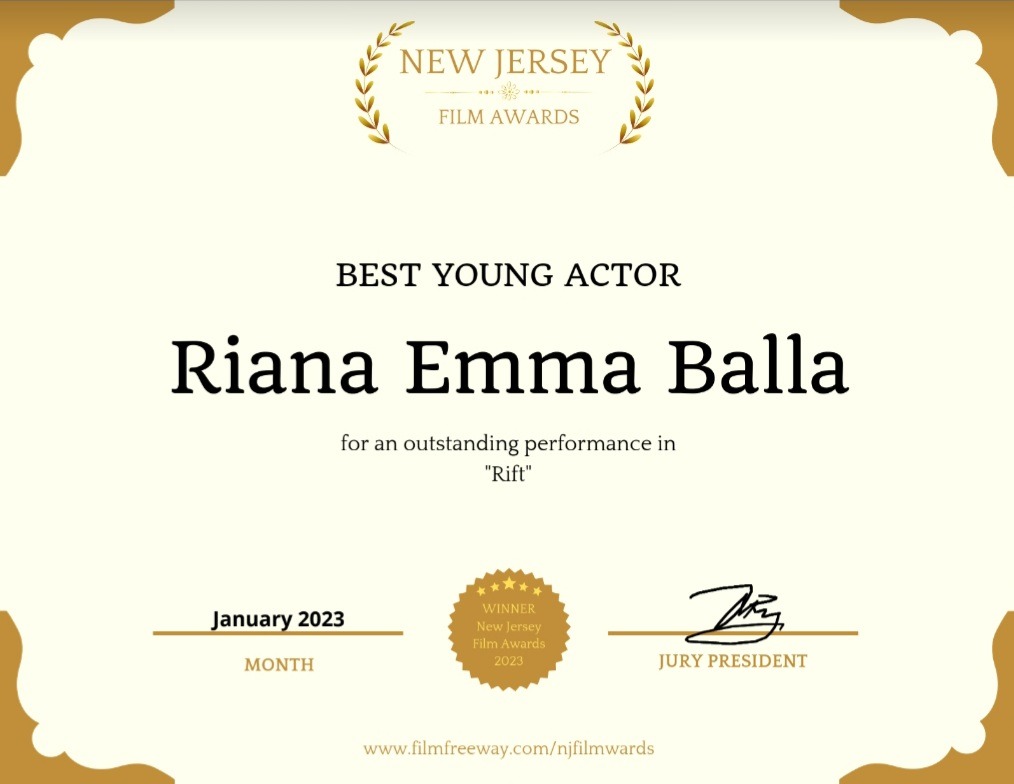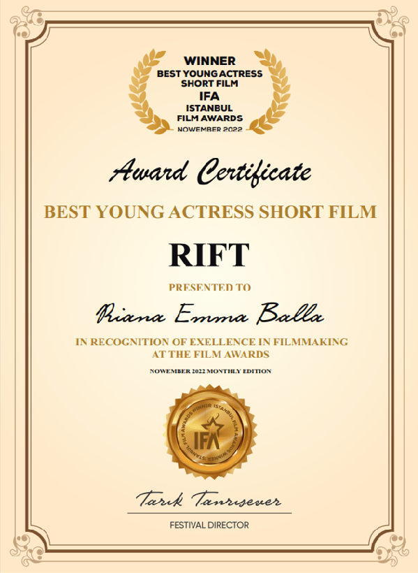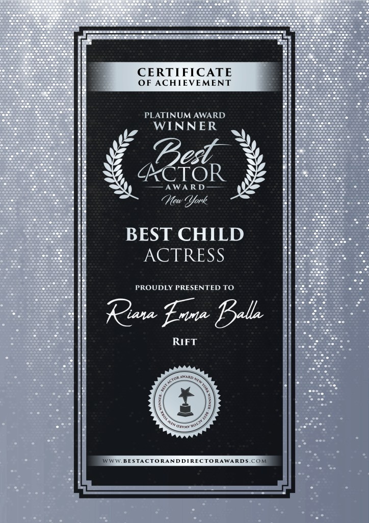 Best Actor & Director Awards (New York) – Best Child Actress- Platinum Award Winner 2022
