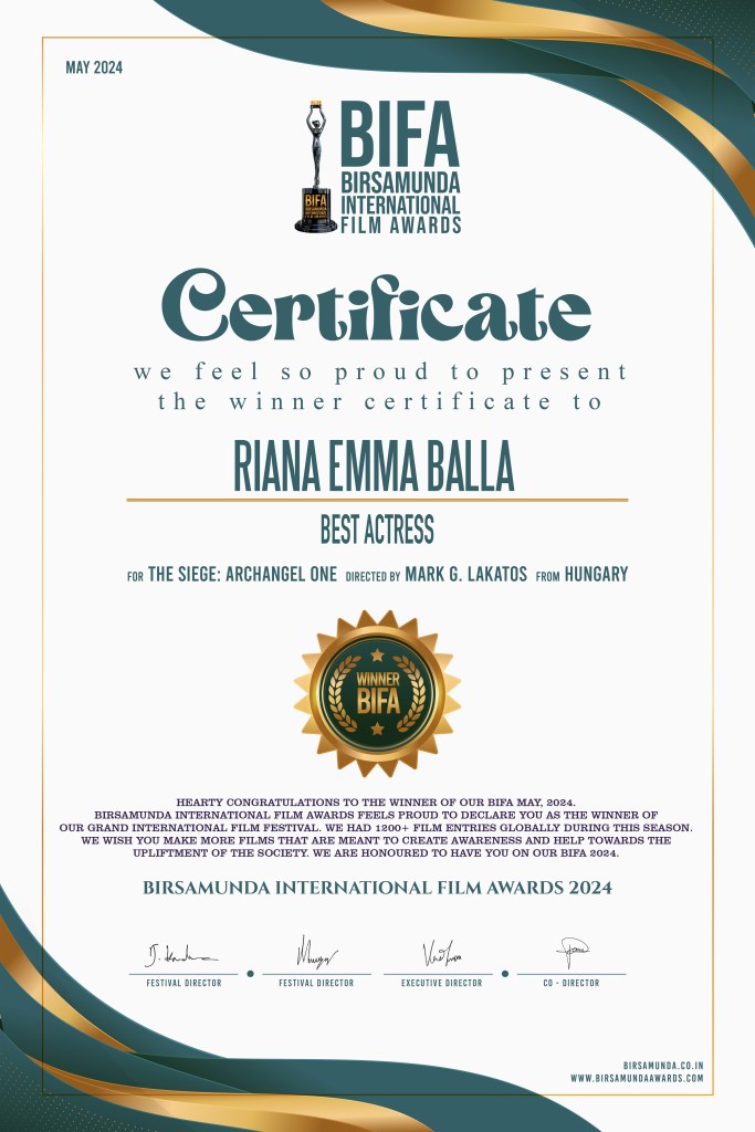 Titan International Film Festival /SYDNEY/ -Best Actress of the Year 2024